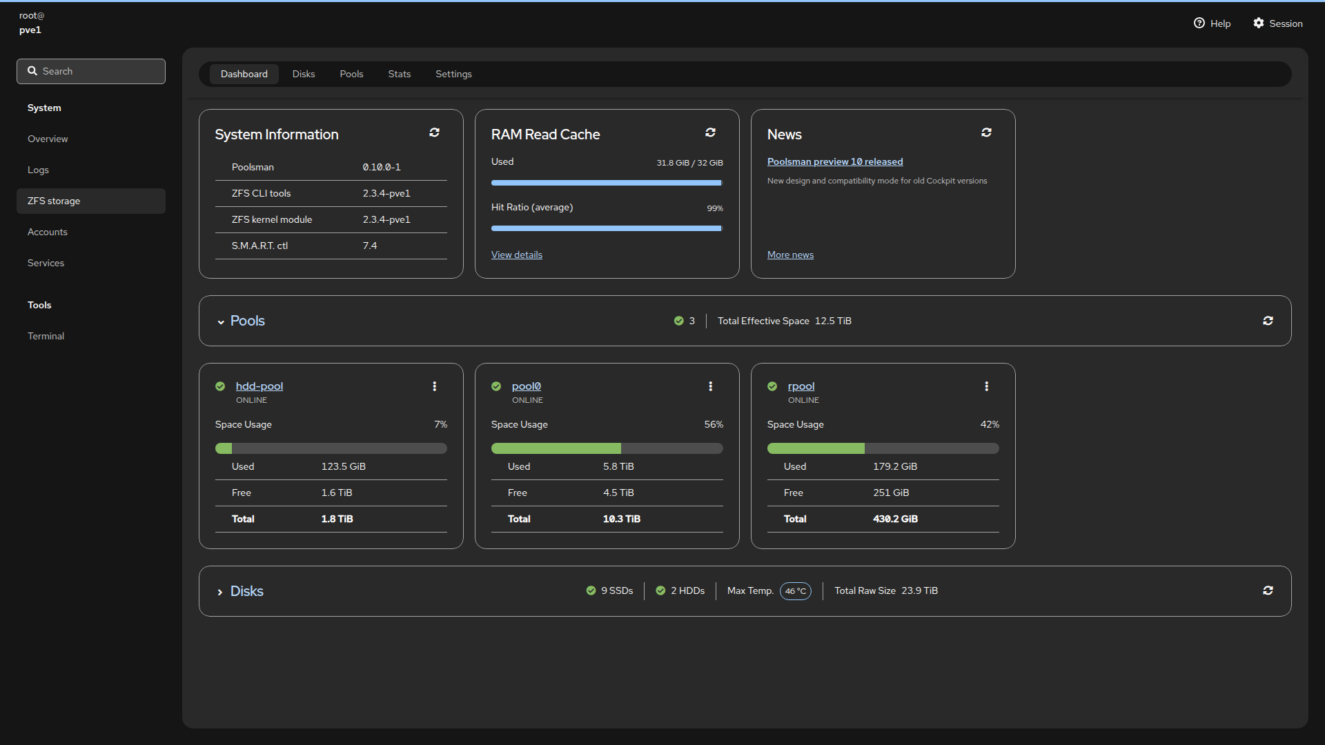 - Seamless integration on older Cockpit. Poolsman automatically detects whether it runs under older versions of Cockpit and adjusts its styling accordingly.